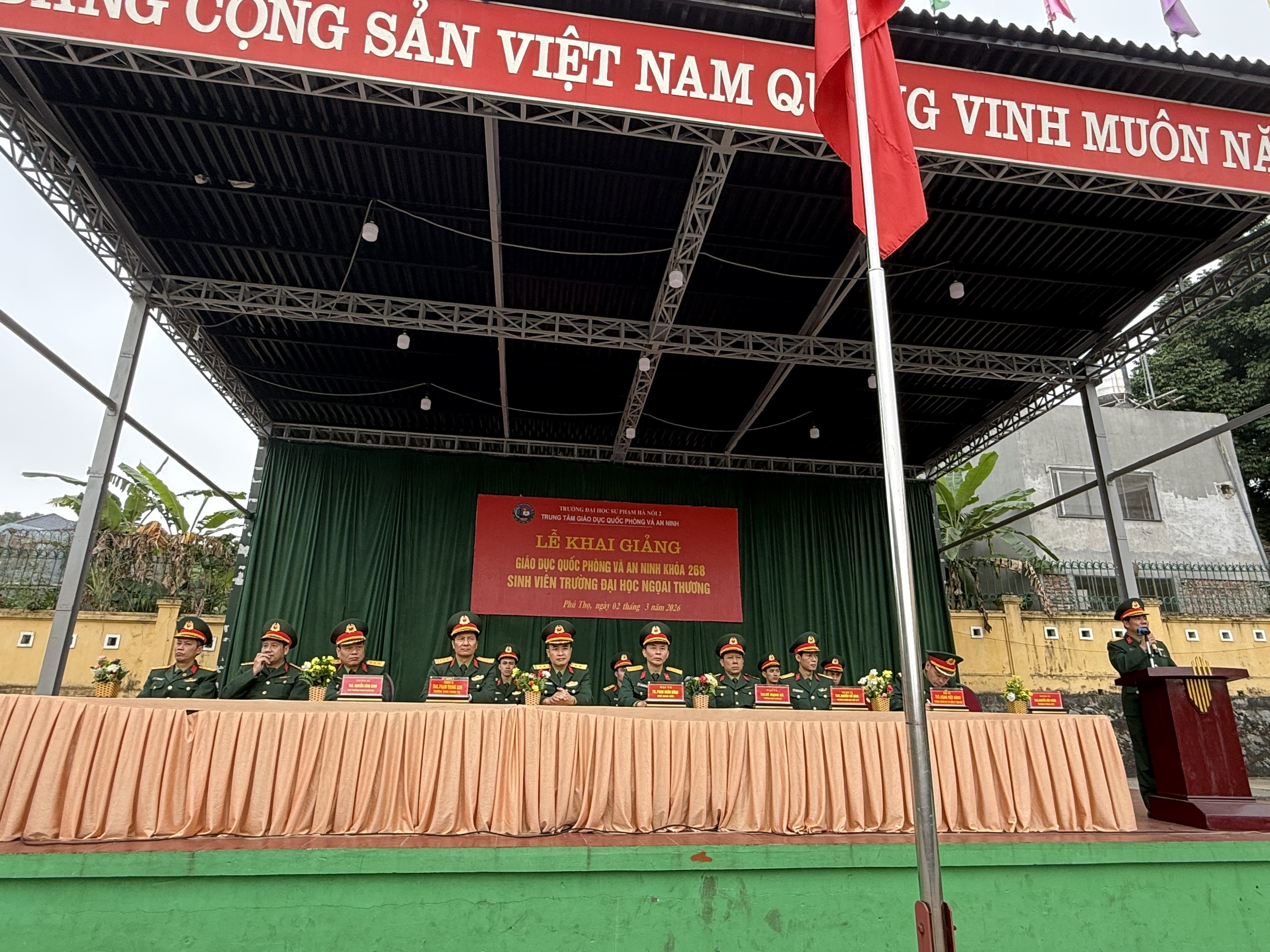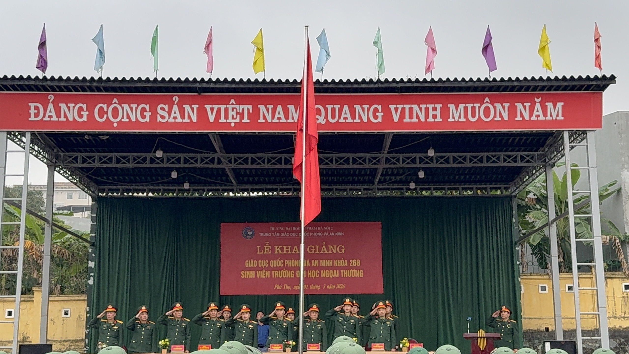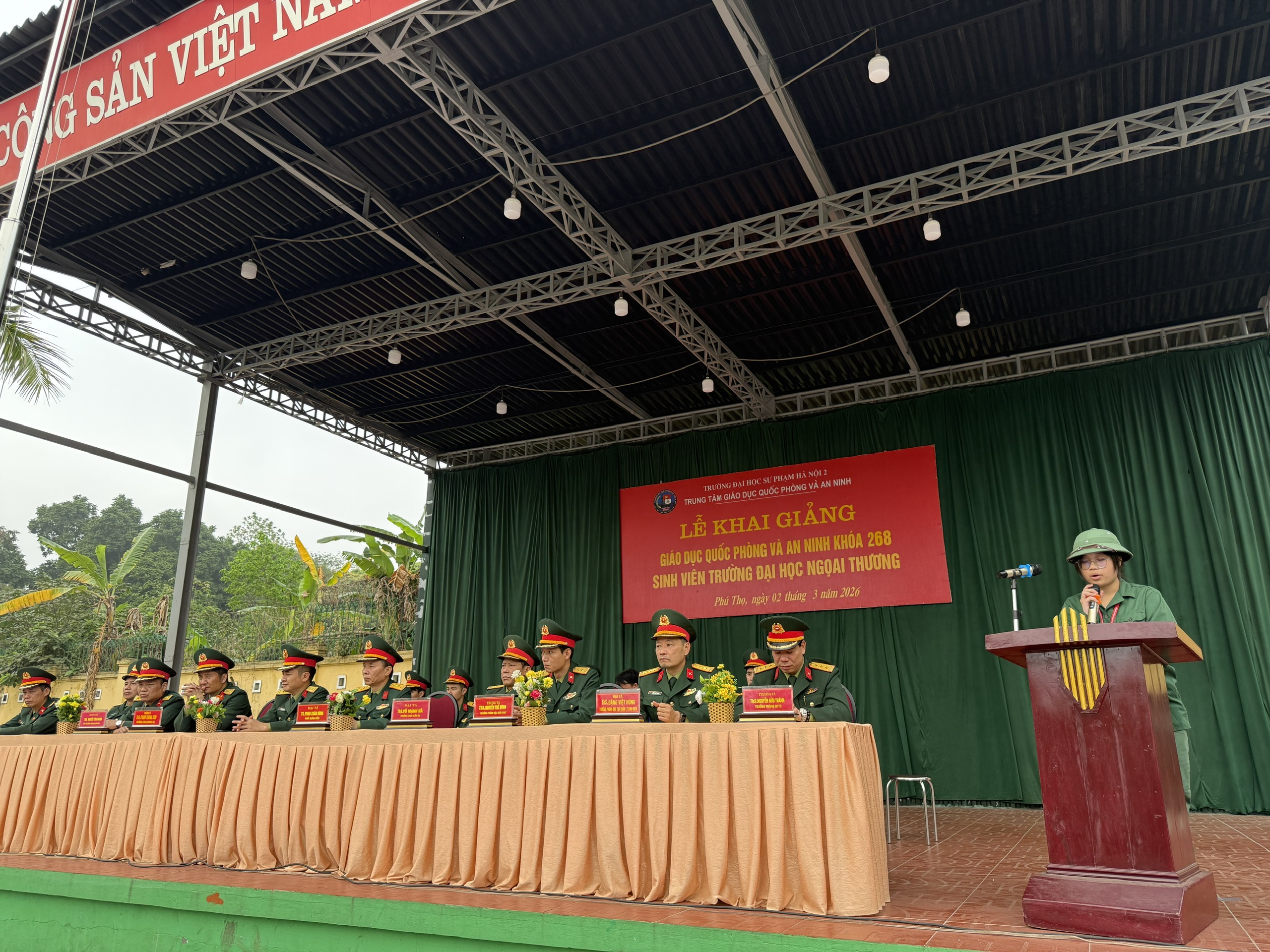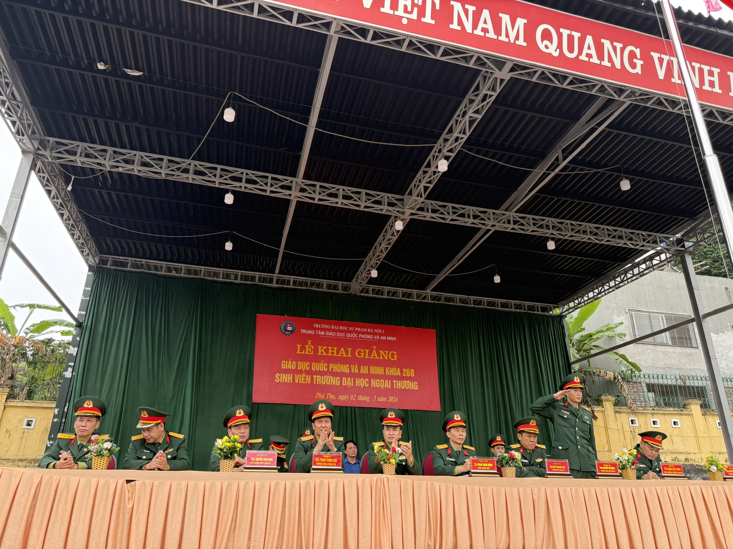 Trong không khí phấn khởi của những ngày đầu xuân năm mới 2026, sáng nay ngày 02/3/2026 Trung tâm GDQP&AN Tường ĐHSP Hà Nội 2 đã long trọng tổ chức Lễ Khai giảng khóa học GDQP&AN K268 cho gần 1.700 sinh viên Trường Đại học Ngoại thương tham gia khóa học.