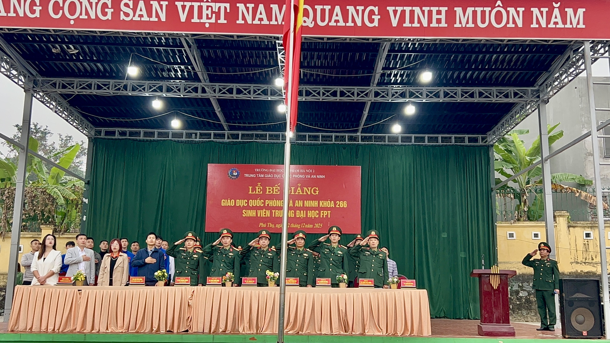 Sáng nay, 12/12/2025 Trung tâm gDQP&AN Trường ĐHSP Hà Nội 2 đã long trọng tổ chức lễ Bế giảng GDQP&AN khóa 266 cho hơn 1.200 sinh viên Trường ĐẠi học FPT tham gia học tập và rèn luyện tại đây.
