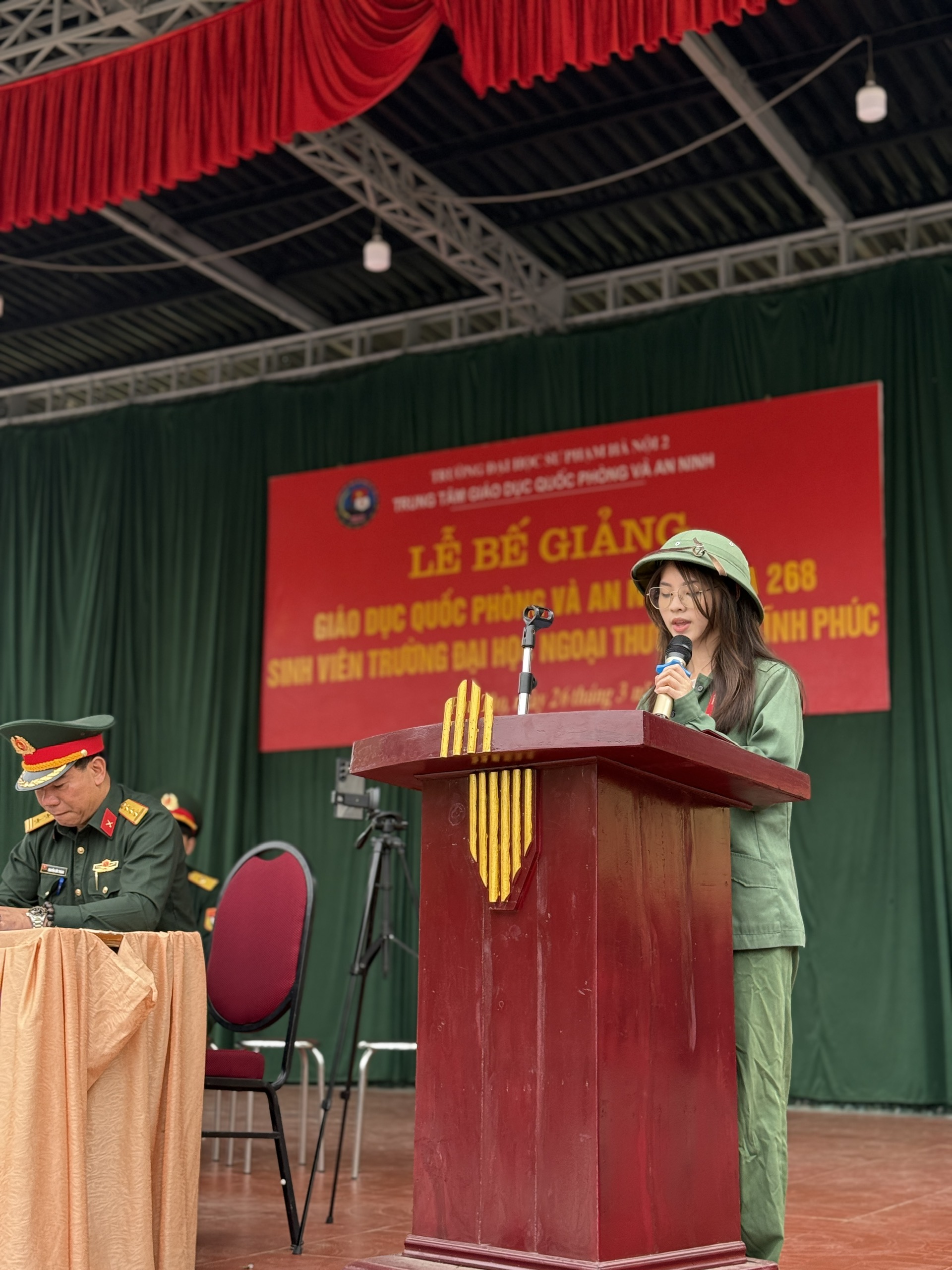 Sau thời gian học tập và rèn luyện nghiêm túc, Lễ Bế giảng khóa học Giáo dục quốc phòng và an ninh khóa 268 tại Trung tâm GDQP&AN Trường ĐHSP hà nội 2 của sinh viên Trường Đại học Ngoại thương đã diễn ra trong không khí trang trọng, phấn khởi và đầy tự hào. Đây không chỉ là dịp nhìn lại chặng đường đã qua mà còn là cơ hội ghi nhận những kết quả nổi bật mà toàn khóa đã đạt được.